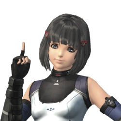 En su pelo se pueden ver dos horquillas con forma de Monado.