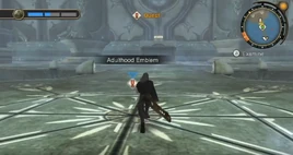 The Adulthood Emblem is a ceremonial place in Xenoblade Chronicles. It is located at the Sororal Statues in Satorl Marsh. It consists of emblem engravings on the floor in front of the Sororal Statues with four emplacements for offerings made during an ancient High Entia coming-of-age ceremony. The Adulthood Emblem is used the first time during The Ancient Ceremony where four Radiants are offered to perform the ceremony. The Satorl Guardian is summoned and must be defeated to grant passage to the upper regions of Bionis. It is later used during The Imperial Ceremony where four Radiants are offered, making a new Guardian appear, the Radiant Pterix, and upon defeating it the High Entia Emblem is received.