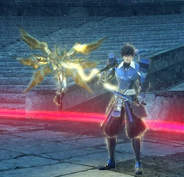 He later ambushes the party alongside Mikhail and Patroka at Genbu Crown and attempt to get the Omega Fetter. Though they are defeated by the party, Jin shows up and is able to take both Pyra and the Omega Fetter. Malos later tells him that an Aegis Core holds information on every life form and that Aegises can survive for a short period of time without their Cores.