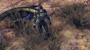 Her class is Lone Exile, a Defender Class. She is an aggressive defender who fights with a double-edged sword that deal massive damage. She attacks enemies with a swift and powerful slash, gaining Aggro and allowing her allies to counterattack.