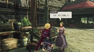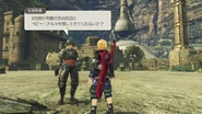 Returning to the Weapon Development Lab, Shulk continues his research on the Monado, a mysterious blade used by Dunban in the Battle of Sword Valley, until goaded by his mentor, Dickson, to go outside and get some fresh air. The player is then introduced to Fiora, Dunban’s younger sister, who is directed by Dunban to share some of the food she has prepared with Shulk, who is relaxing at Outlook Park. Fiora runs the errand and she and Shulk share a moment together before being interrupted by falling debris, forcing them to return to the Colony.