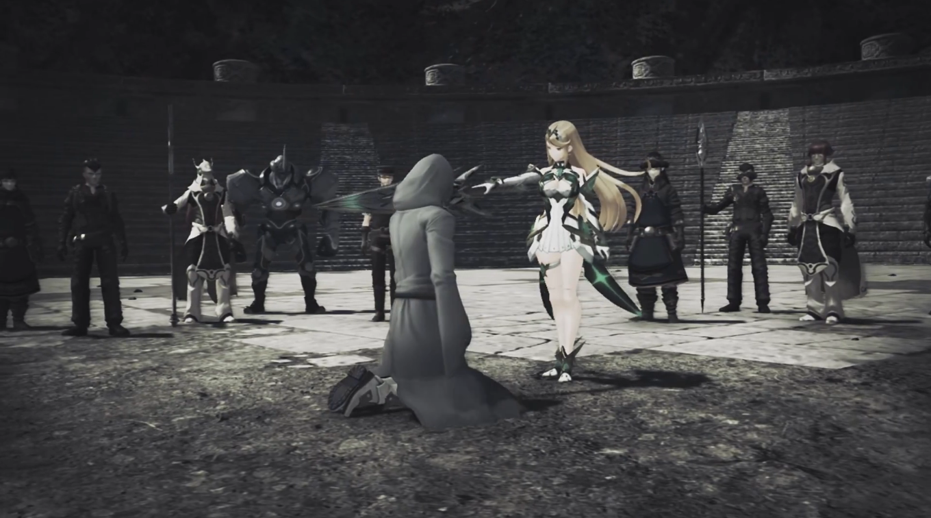 The rising tensions lead to the Kingdom of Uraya issuing rations; some soldiers are seen forcibly taking food from civilians. Many warships are seen docked in Fonsa Myma. The group battles Malos and Akhos at the Olethro Playhouse, where Vandham is killed and Mythra reawakens.