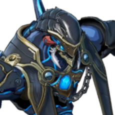 Sever is an humanoid Blade with four limbs, a tail, and an elongated head with tiny eyes and a fish-like mouth full of teeth. He is blackish-blue with gold-edged armor, large black claws and a pentagonal Core Crystal in the center of his chest.