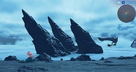 Triedge Isle (Japanese: 三剣の孤島, Sanken no Kotō) is a location in Xenoblade Chronicles 2. It is located on the Central Plain of Temperantia, just off the southern coast. It is a small, jagged island sitting very shallow in the Cloud Sea.