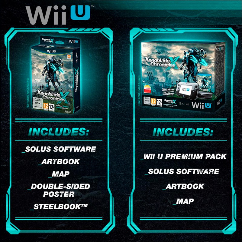- The Xenoblade Chronicles X Limited Edition Pack including an artbook, a world-map, a double-sided poster, and a Steelbook(TM).